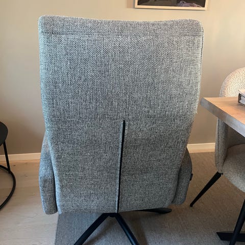 Vi kjøpte den før jul 2025 som en utstillings stol, og kan derfor selge den så rimelig. Den ble dessverre for stor for oss, derfor selger vi den.