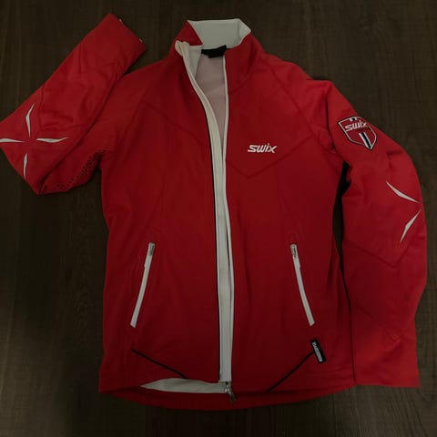 Swix langrennsjakke i rød farge. Størrelse S. Jakken er pent og lite brukt, fremstår som ny.