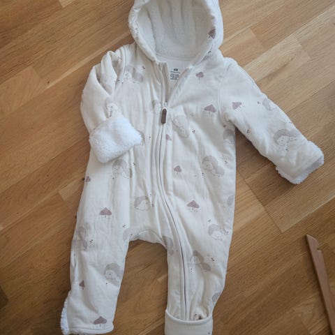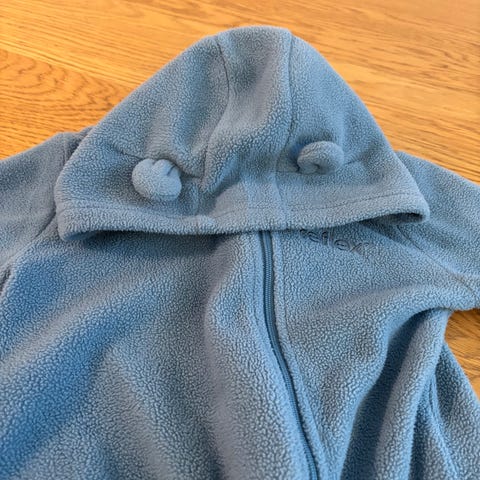 Myk dress fra name it, med føtter, hette og trykknapper.