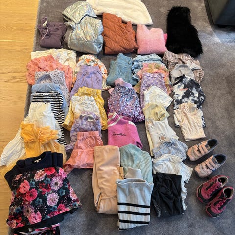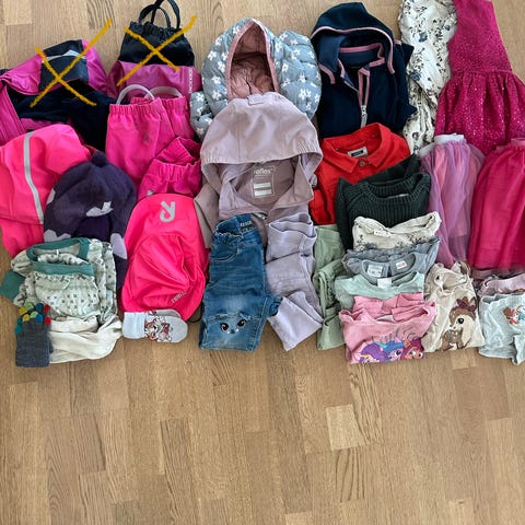 Stor klespakke til jente, fra zara, name it, kappal, jakker, kosedress, vest, bukser..