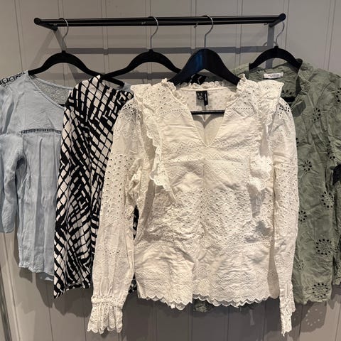 Størrelsene er stort sett M. Se bilder for detaljer.