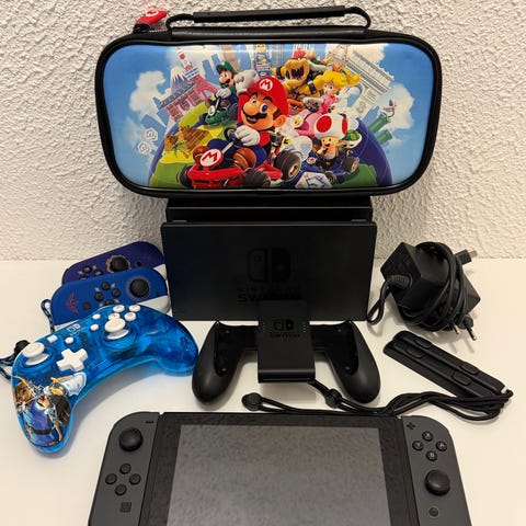 Nintendo Switch spillkonsoll med spill og tilbehør