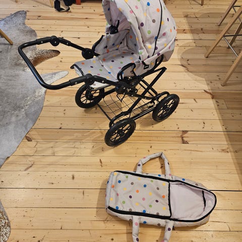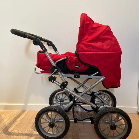 BRIO dukkevogn i rød farge. Mye bruk igjen