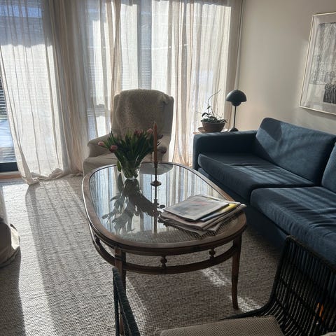 Stort salong bord med glassplate