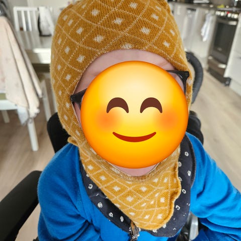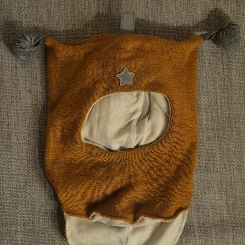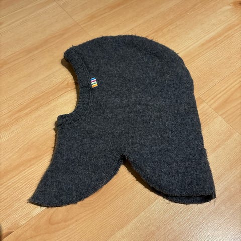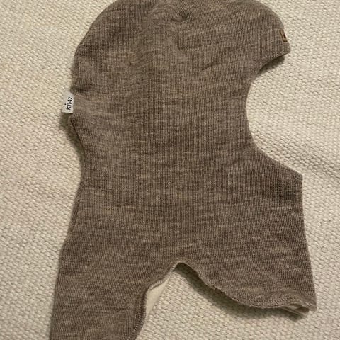 Kivat ull balaklava i brun farge, unisex modell i størrelse 110. Balaklavaen er laget i ull med lys innside, og dekker både hode, hals og deler av skuldrene. Egnet som varmende lag på kjølige dager for barn i aktuell størrelsesgruppe.
