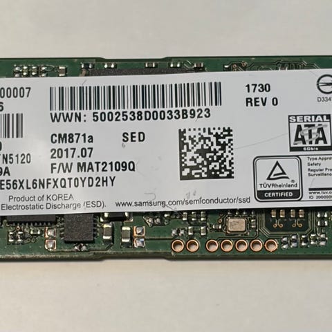 Samsung M.2 SSD. Intern lagringsenhet i M.2-format for bruk i kompatible PC-er og bærbare. Egnet som systemdisk eller ekstra lagring, avhengig av kapasitet og spesifikasjoner på den enkelte modul. Det anbefales å sjekke hovedkortets eller laptopens kompatibilitet med M.2 SSD før bruk.