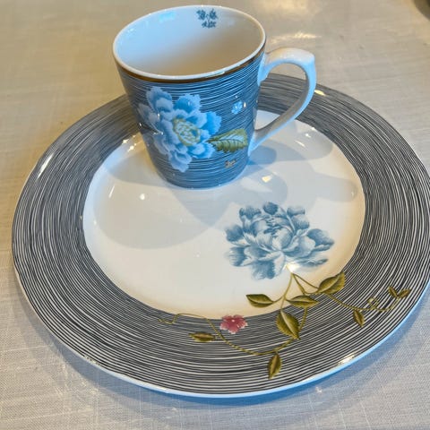 Laura Ashley servise blått og hvitt mønster