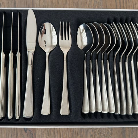 Totalt 48 deler kniver, gafler, spiseskjeer og teskjeer.