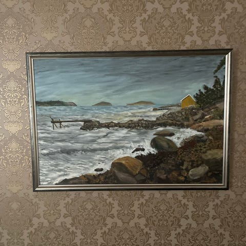 Ukjent kunstner maleri maritimt motiv blå og hvit