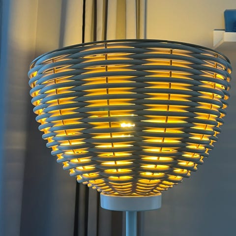 Lampen er i god stand og isatt pære følger med. Ikke egnet for sending pr post. Anbefaler henting.