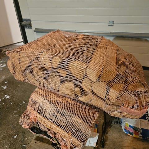 3 vedsekker selges pga flytting. Hentes i lien (ca 15 kg pr sekk)