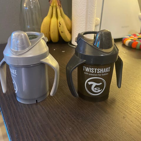 3 Twistshake tutekopper og flasker i rosa til barn. Settet består av tre ulike kopper/flasker med tut, hvor én har håndtak på sidene for enklere grep for mindre barn. Super søte og praktiske.