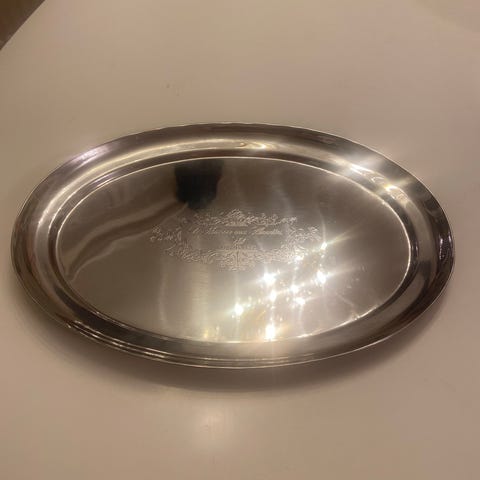 Georg Jensen skål i sølvfarget, blankpolert rustfritt stål. Skålen har en organisk, avrundet form med myke kanter og en lav profil. Egner seg til servering av snacks, frukt eller som dekorativ bolle på bord eller benk. Passer inn i moderne interiør og kan kombineres med annet stål- eller metalltilbehør.