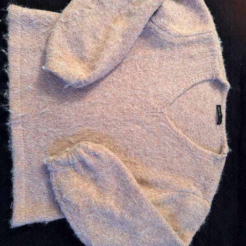 Andiata genser og skjørt i rosa akryl for dame i størrelse M.