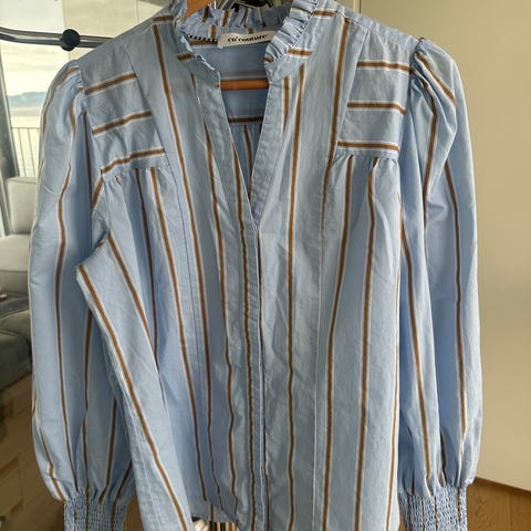 Elegant langermet bluse fra Co`couture i et blått og rosa mønster. Denne lekre blusen har en normal passform og en skjult glidlås bak . Halvhøy, ruflete krage og mansjetter med stretch. En utrolig flott bluse som kan brukes gjennom årets mange anledninger. Denne finner du i et utvalg Companysbutikker samt på Companys.no