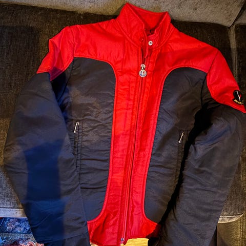 Motorsykkel jakke med skulderbeskyttere og plass til ryggbeskytter, perfekt for varmere dager.