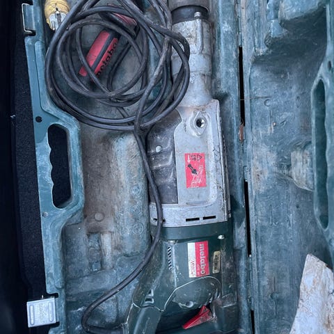 Metabo MHE 95 meiselhammer for betong- og murarbeid. Elektrisk modell med 230 V tilkobling. Egnet til meisling, riving og annet tungt arbeid i harde materialer. Leveres i solid transportkasse slik det fremgår av bildene.
