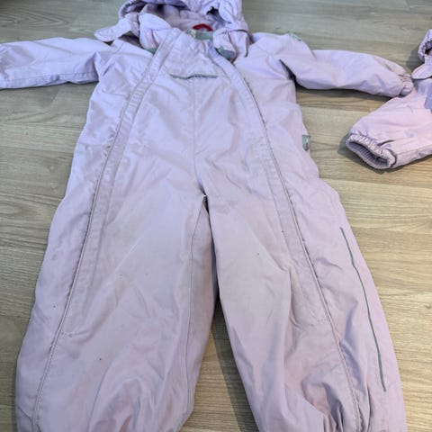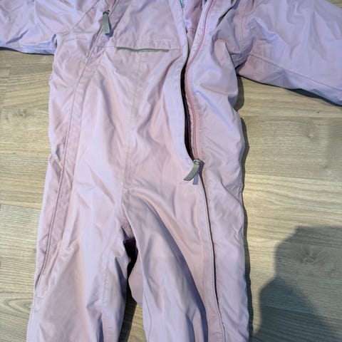 Fantastisk vinterdress! Brukt denne til mine jenter i alle størrelser. Barnet holder seg tørt og varmt i all slags vær. Liten flekk nederst på magen, usikker på om denne går av i vask. Ellers i god stand. Ingen slitasje i stoffet.