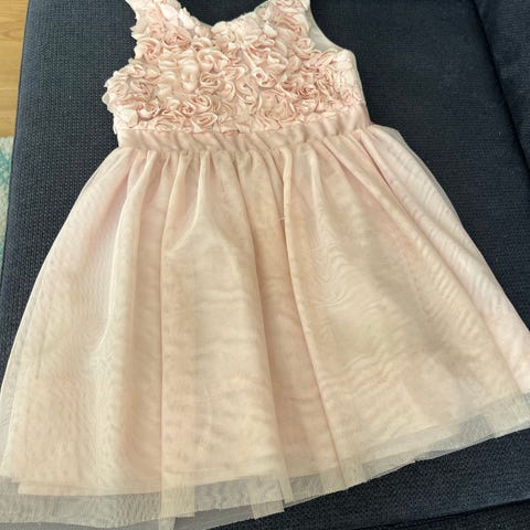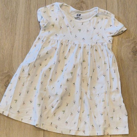 H&M kjole for jente i størrelse 98. Kjolen er flerfarget med sitronmønster på lys bunn og har tynne skulderstropper. Den er laget i polyester med lett, lagdelt stoff og elastikk i midjen for bedre passform. Passer som sommerkjole eller til hverdagsbruk.