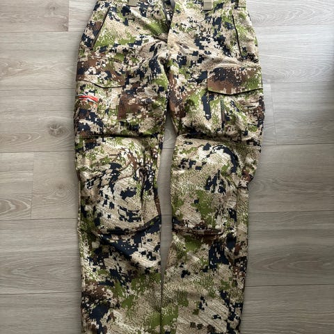 Selger en pent brukt bukse fra Sitka Gear. Noen få synlige merker på innsiden av foten nede ( se bilde). Ellers lite slitasje.