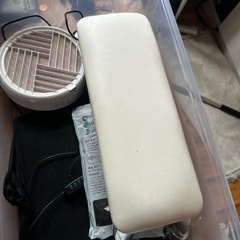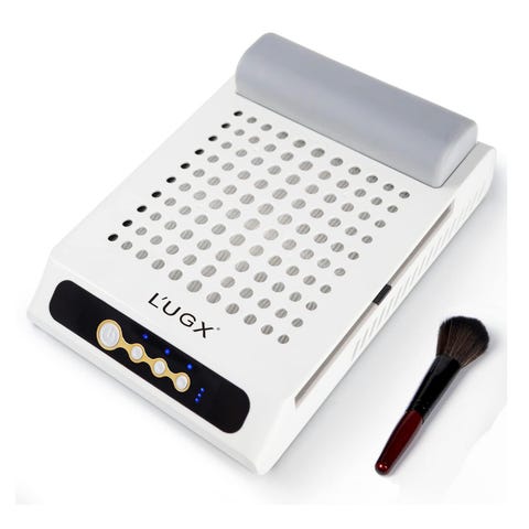 Nailster støvoppsamler for negler med tilhørende børste. Enheten er utformet for å samle opp støv ved filing og sliping av negler på hender eller føtter. Den har perforert overflate for effektiv oppsamling, kontrollpanel i front og en plan arbeidsflate på toppen. Passer til bruk ved manikyr og pedikyr, både hjemme og i profesjonelle omgivelser.