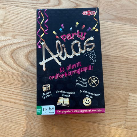 Party Alias er et ord- og forklaringsspill der spillerne forklarer ord for lagkameratene uten å bruke selve ordet. Spillet inneholder spillebrett, kort med ord, spillebrikker, tidsmåler og øvrige nødvendige komponenter som terning og markører. Antall spillere og anbefalt alder fremgår av esken.