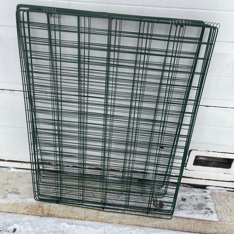 Nettinggjerde i grønnlakkert metall. Består av nettingplater med rektangulære ruter og medfølgende festeklips/spiker for montering. Egnet til enkel inngjerding, avskjerming eller støtte til planter i hage eller uteområde. Kan tilpasses ved å klippe eller kappe til ønsket størrelse avhengig av behov. Festene medfølger såklart. 7 fester og 6 gjerder. Veier ingenting så lett å ta med seg