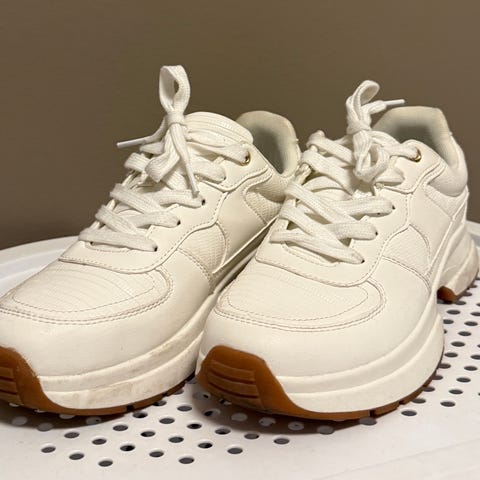 Tøffe og veldig lite brukte Sneakers fra Floyd i str 38. Beige med skinn og gull detaljer.