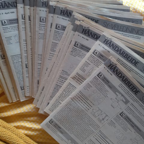 Selger div håndarbeids oppskrifter. 25 kr pr blad og 50 kr pr bok. Kan sende mot at kjøper betaler frakt