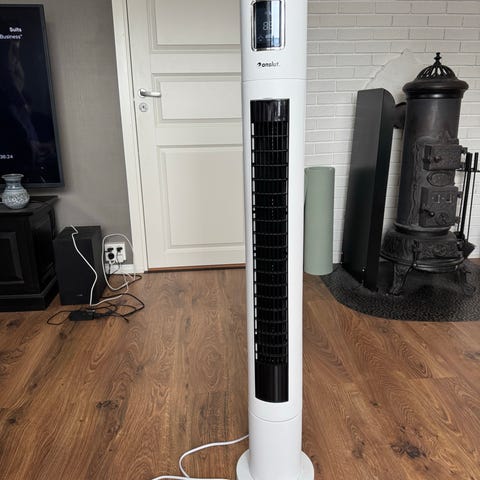 - Pent brukt fjernkontroll med knapper for de samme funksjonene som på selve viften. Enheten kobles til vanlig stikkontakt med ledning. Passer til plassering på gulv der man ønsker sirkulasjon av luft.
