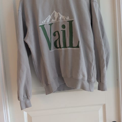 Vailent genser i herremodell størrelse S. Genseren er grønn og laget i bomull. Den har rund hals, lange ermer og ribbekanter ved hals, ermer og nederkant. Forsiden har trykk med «New York» og college-inspirert motiv. Passer til hverdagsbruk og kan brukes alene eller over t‑skjorte.