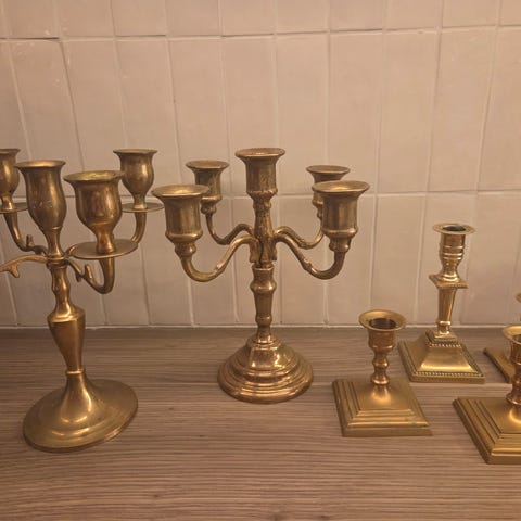 Tre lysestaker i messing