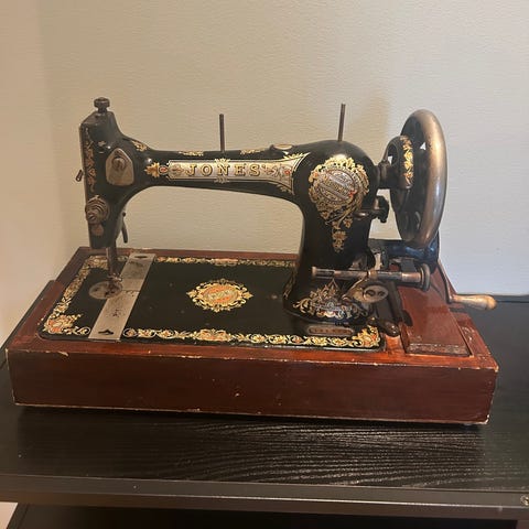 Gammel Singer håndsveiv symaskin selges som dekorasjon. Flott vintage uttrykk med originale detaljer og patina. Passer fint som interiørelement i stue, hytte eller atelier.