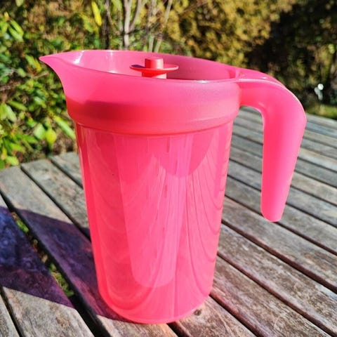 Tupperware termoskanne i svart farge. Kannen har integrert hank og helletut med lokk. Egnet til servering og oppbevaring av varme eller kalde drikker på kjøkkenet, ved måltider eller til servering ved bordet.