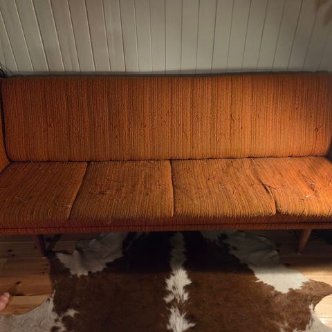 Se bilder. Gode tynne 70- eller 80-tallsmadrasser som dreper ryggen din på sikt, men som passer fint til ikke altfor hyppige gjestebesøk. Har derfor supplert med denne jumboversjonen av en springfjærmadrass når den har vært trukket ut til dobbel.