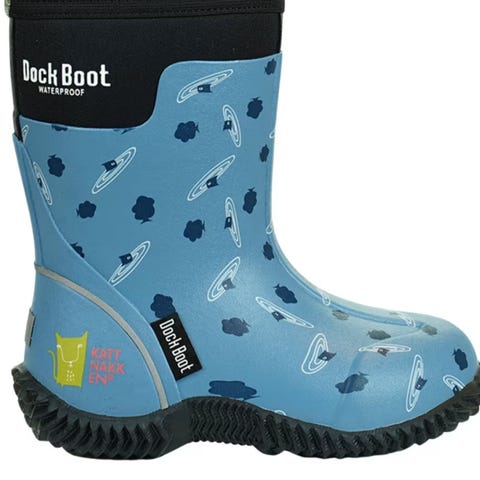 Dock Boot - Kattnakken Blåbær Kattefot. Den vanntette, varme og komfortable allværsstøvlen - nå med eget Kattnakken-design! Støvelen er perfekt til daglig bruk i barnehagen, på skolen, i skogen, på fjellet og for andre utendørsaktiviteter hele året. Dock Boot er konstruert i neopren og naturgummi.