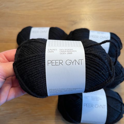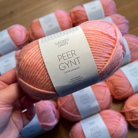 12 nøster Peer Gynt garn fra Sandnes selges samlet for kr. 300,-.