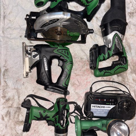Hitachi sett 28v eldre. Selges med 1 batteri.. ene slagtrekker funker ikke