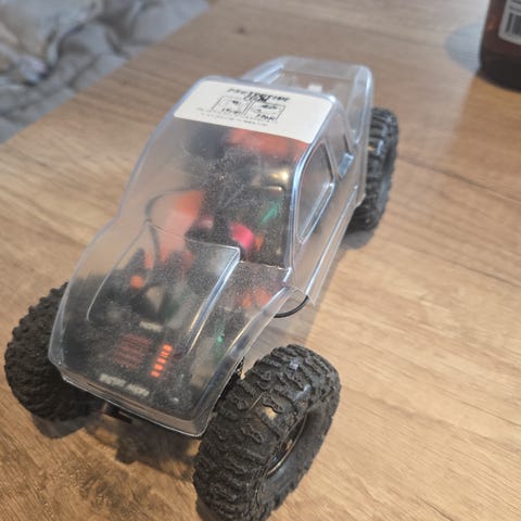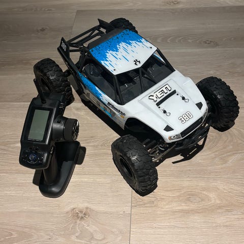 Kjøpt ny av meg, og oppgradert. Ny Hobbywing 1800 kv børsteløs motor / esc kombo, programmerbar. 30kg styreservo, MIP stål driveshafts. YeahRacing aluminium beadlock felger, BFG dekk med Injora silikon inserts (blå, medium). Prøvekjørt på stuegulvet, aldri vært ute. Se bildene for å vurdere tilstand. Klipless body i materiale sterkere enn lexan. Original radio / mottaker. Manual til bilen og manual til motor er med. Nypris 4190. Nypris for alle oppgraderinger er sikkert ca 3000. Kan ses og hentes i Porsgrunn, eller sendes godt pakket i original emballasje. Ved henting oppgjør via Vipps, ingen kontanter. Bytte er ikke interessant.