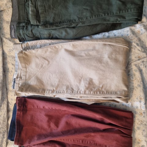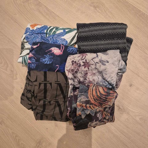 Selger unna noen til dels ubrukte klær. Ikke noe merkeklær, men ligget ubrukt i en skuff i flere år. På flere av disse er kun merkelapp fjernet, men ikke brukt.