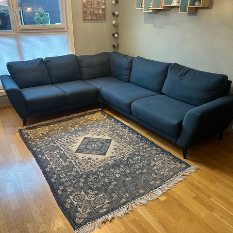 Teppe i lys grå farge. Rektangulær modell som passer under sofabord eller som gulvteppe i stue. Nøytral farge som er lett å kombinere med ulike møbler og interiørstiler.