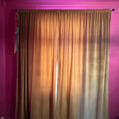 Gardinene er kjøpt hos gardin spesialist og sydd etter mål.