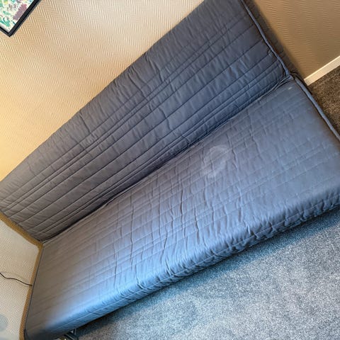 Gis bort! Sofa fra IKEA i serien Ekebol. Denne har stått på verksted og er godt brukt, litt hull i stoffet og kaffeflekker. Stoffet kan taes av og vaskes.
