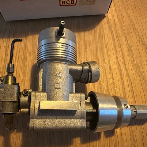 Selger ny O.S. Max 81 VR-M modellmotor for båt, og andre fly modellmotorer i tillegg. Todelt motorblokk i metall med topp og veivhus, levert i original eske med tilbehør som vist på bildene. Motoren er en glødemotor konstruert for bruk i modellfly, med standard festepunkter for montering i flykropp og tilkobling til drivstoffsystem. Flere brukte modellmotorer og propeller følger med gratis.
