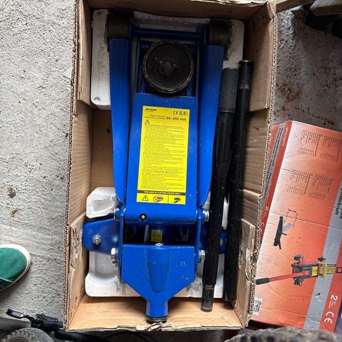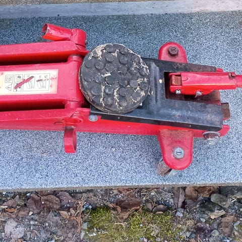 Hydraulisk garasjejekk i blå og svart farge. Jekken har hjul for enkel forflytning og løfteplate med gummipute for bedre feste mot løftepunktet på bilen. Egnet til løfting av personbil ved dekkskift og enklere vedlikeholdsarbeid. Nøyaktig løftekapasitet og løftehøyde fremgår av merkingen på jekken.