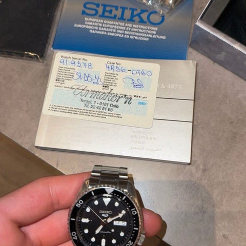 Følger med original eske, papirer, garantikort, lenke og reim samt en GL831 uncle seiko reim i 20mm. Meget pen kosmetisk tilstand. Se dagsferske bilder i annonsen.