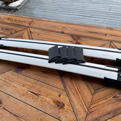 Komplett Whispbar takstativ - har vært brukt på Volvo V 90 med åpne rails. Kan også tilpasses andre biler.