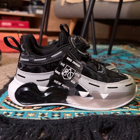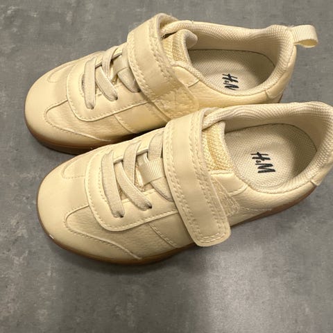 H&M joggesko for barn i størrelse 32. Modellen er unisex og kommer i en lys beige farge med kontrastsåle i brunt. Skoene snøring kombinert med borrelåsrem over vristen for enkel av- og påkledning. Overdelen er i syntetisk materiale med struktur, og sålen er i gummi. Egnet som hverdagssko til skole og fritid for både gutter og jenter.