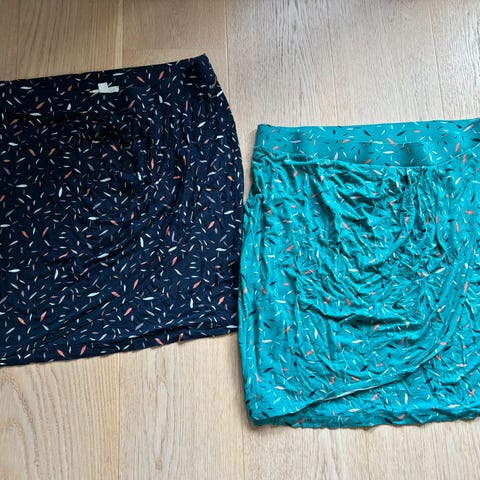 Størrelse 42. Med underskjørt. Midjen 90 cm, lengde 70 cm.
