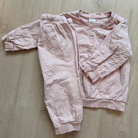 Joha sett med body og bukse for jente i størrelse 80. Sett i flerfarget design med motiv av luftballonger og detaljer i dus rosa. Langermet body med trykknapper mellom bena og myke kantbånd. Matchende bukse med strikk i livet. Egnet som hverdagsklær eller koseklær for små barn.